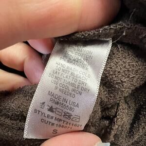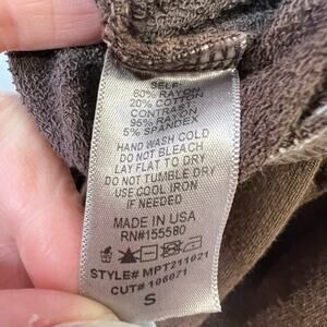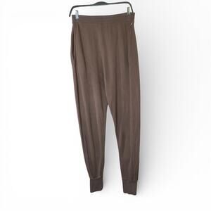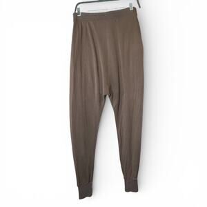 Crafted from a soft French terry fabrication in a versatile dark brown color, they feature an elastic drawstring waistband and convenient side pockets. They originally retailed for $98 USD.