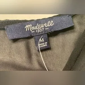 Madewell floral fringe sheer black peasant blouse top size Medium. NWT.