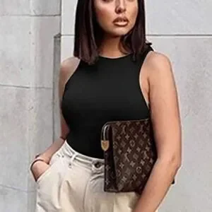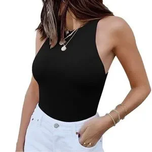 High neck body suit with snap button closure. Smooth body suit with racer back fit, super comfortable and sleek. Simple but classic closet staple.