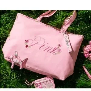 Elegant pink tote with delicate floral embroidery. Ideal for daily use.