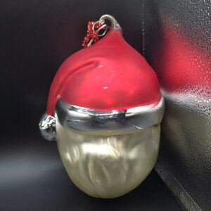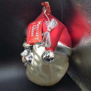 VTG Department 56 Handblown Mercury Glass 9" Santa Face Ornament With Box & Tags, Model Number 77194. Circa 1980s-early 90s.