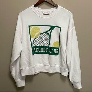 Joe Fresh White and Green Racquet Club Sweatshirt Tennis Women’s Large