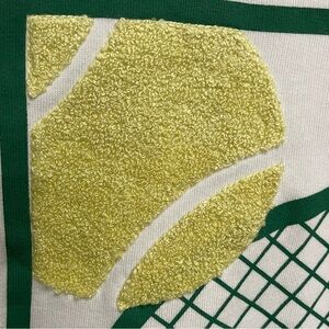White, green, yellow, embroidered, tennis, racquet ball, crewneck, sweatshirt, athletic, casual, sporty, fitness, gym, women’s large