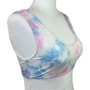 Size Large in Funfetti Blue/Pink Tie-Dye.