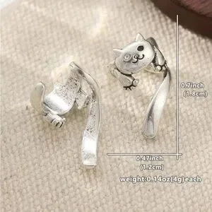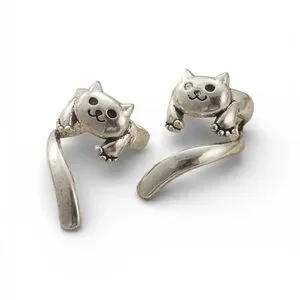 Adorable cat-shaped ear cuff in silver tone. Wraps around the ear for a playful look. Lightweight and easy to wear. Great for stacking with other earrings.