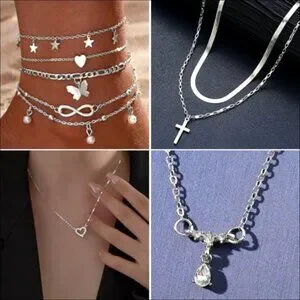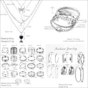 • Includes 8 necklaces, 19 bracelets, 44 stud hoop earrings, 21 knuckle rings