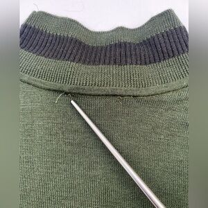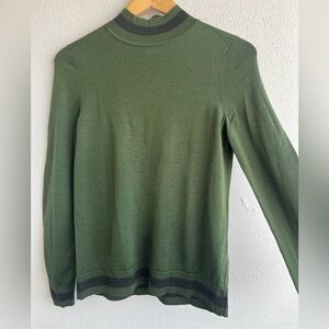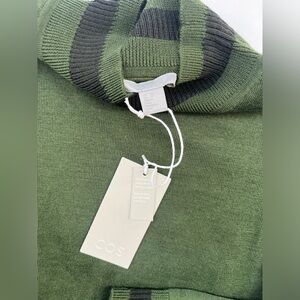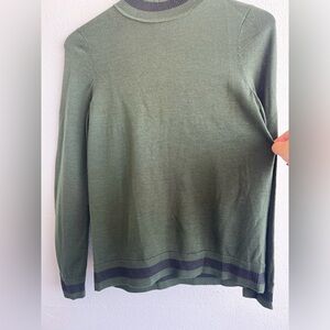 - merino wool, contrasting stripe detail around neck, sleeves and bottom hem