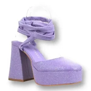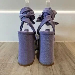 Daisy Street for Dolls Kill purple glitter platform tie up heels sz5