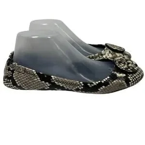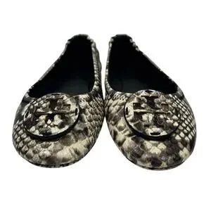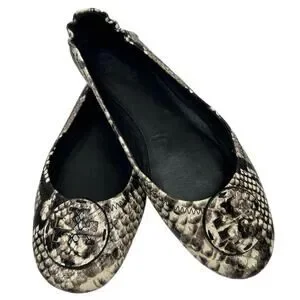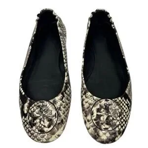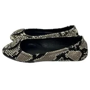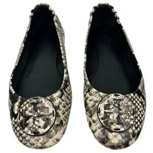 Tory Burch Minnie Travel Ballet Flats, python-embossed leather exterior. Size 9