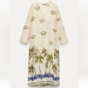 Zara ZW Collection Printed 100% Ramie Tunic Dress