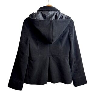 Jack Women Double Breasted Peacoat Jacket L Black Military Style Detachable Hood
