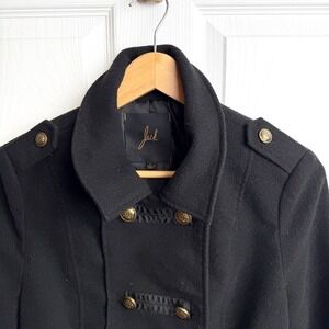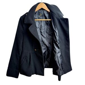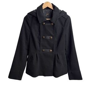 Jack Women Black Double Breasted Peacoat Jacket L Military Style JA32634 with detachable hood.