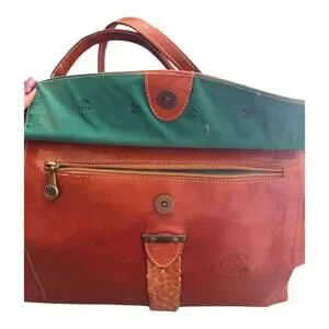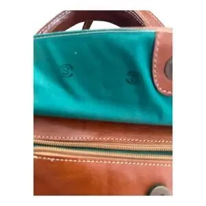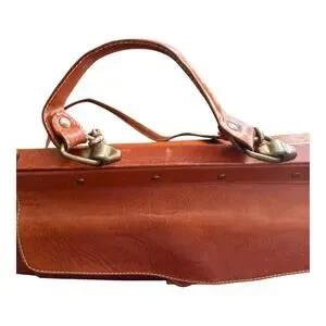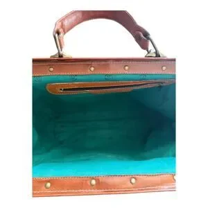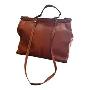 Vintage Brown Leather Satchel Tote Business Bag with Detachable Shoulder Strap