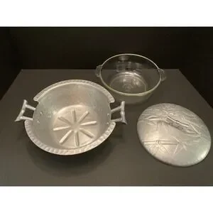Vintage Everlast Aluminum "Bali Bamboo" 1948-1959 Casserole w/ Pyrex Insert MCM