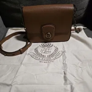 bnwt ralph lauren millbrook chain brown women's cross body. peeling inside. never used. dust bag included.