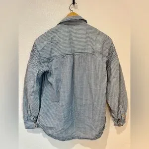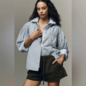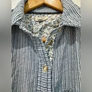 Pilcro Anthropologie Blue Striped Button Down Shirt Heart Patch Preppy Top XXS