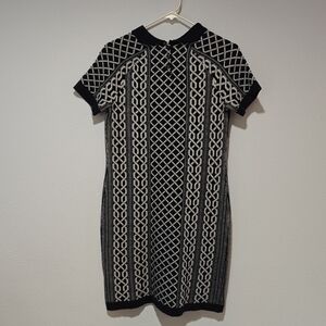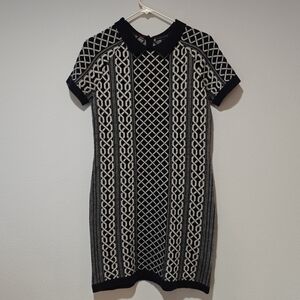 Tommy Hilfiger Wool Dress Size Small Geometric Navy Blue Collared