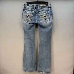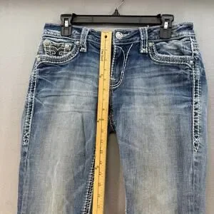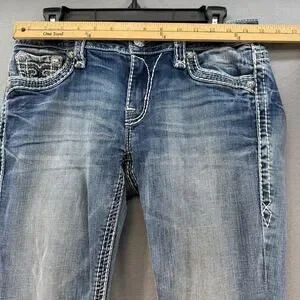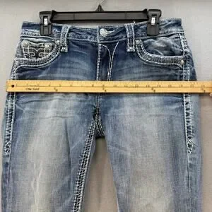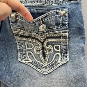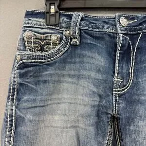 Rock Revival Jeans Womens 27 (4) Blue Anzelie Easy Boot Faux Pocket Flaps Blingy