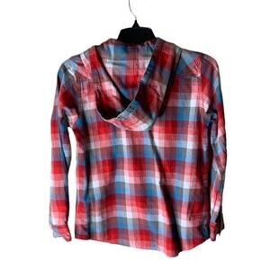 Wrangler Retro Shirt Women's Size Medium Hooded Pearl Snap Plaid Flannel Cotton