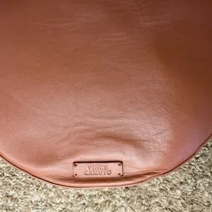 Elevate your everyday style with this chic Vince Camuto Leather Crossbody Bag. 🥐 Crafted from premium brown leather with a soft, pebbled texture, this bag features a modern curved bottom edge and a secure zip-top closure. The gold-tone hardware and embossed logo patch add a signature touch of elegance, while the adjustable strap ensures a perfect, versatile fit for any height. Compact yet spacious enough for your essentials, it’s the ultimate accessory for the woman on the go. ✨