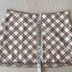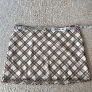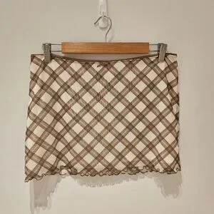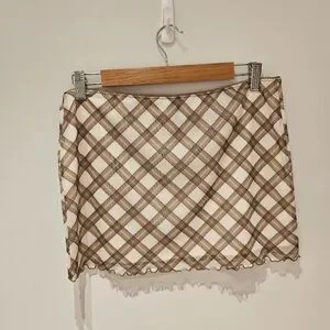 H&M Mesh Mini Skirt M Cream Brown Checked
