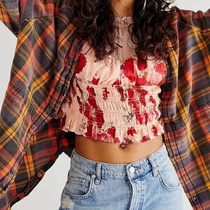 free people Daphne Blouse in Romantic Combo red and pink floral