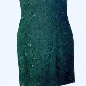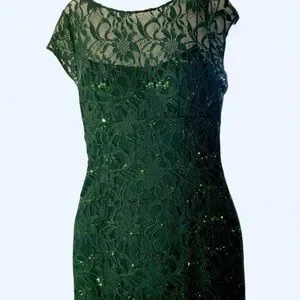 Adrianna Papell Hailey green lace dress with sequins and zipper back 2