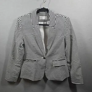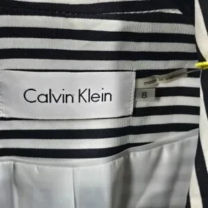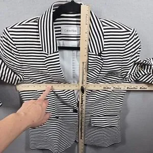 Calvin Klein Womens Blazer Size 8 Jacket Black White Striped One Button
