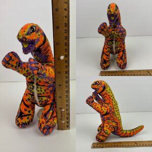 Vtg Play by Play Soft Plush Dinosaur Stuffed Animal Neon Orange Purple Black