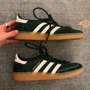 Sambas sneakers in dark green with white stripes. Sporty a d Rich collab. Size 6.5 men’s 8 women’s. Only worn a few times.
