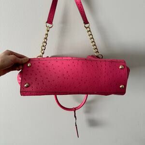 This stylish Hamilton North South tote from Michael Kors is a worthy buy. It has been crafted from ostrich-embossed leather in a pink shade and decorated with an engraved padlock on the front. The bag has two handles, a shoulder strap, and a spacious nylon interior. This creation is ideal for everyday