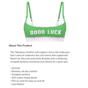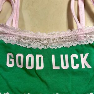 🍀VS PINK Cotton Lace Trim Scoop Bralette & Cheeky Panty Wild Green GOOD LUCK M/L