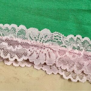 So soft and comfortable, this green and pink bralette and panty set is perfect for lounging or sleeping. The soft fabric and delicate lace details add a touch of elegance. Cotton / Modal blended fabric.