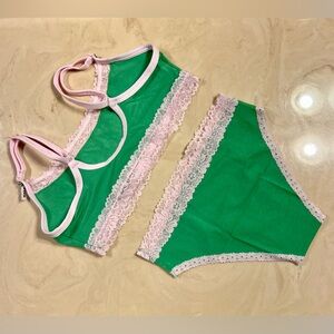 VICTORIA’S SECRET PINK Cotton Lace Trim Scoop Bralette & Cotton Cheeky Panty St. Paddy’s Day