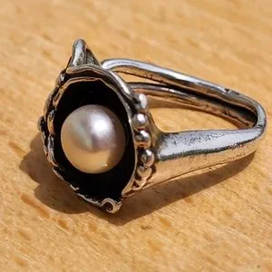 you're getting a nice sterling silver ring with two real pearls artist signed I am not familiar with the signature I cannot make it out I have it circled in a photo it's double signed once on the band on the outside and also inside great peace if you have questions just ask thank you have a great day