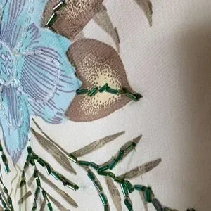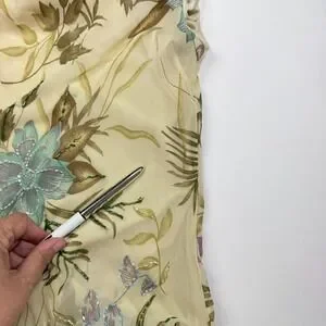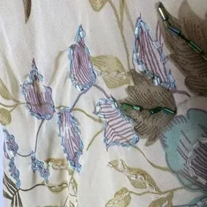 Y2K Floral Midi Dress Beaded Sz M / S Drape Cowl Babydoll Cottage Fairy READ