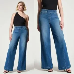 Spanx Pull On Wide Leg Jeans In Medium Wash Size Woman's Large