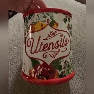 Charming floral design with bold red accents. Perfect for organizing kitchen utensils.