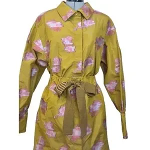 Patou Gold Satin Jacquard Embroidered Midi Shirt Dress – NWT Size 4, MSRP $1750