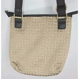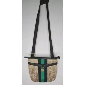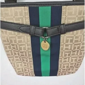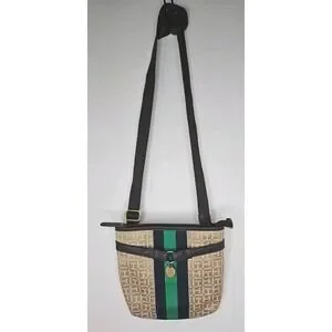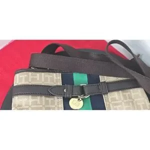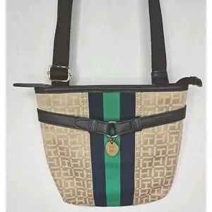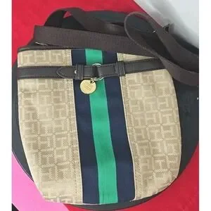 Tommy Hilfiger Tan Blue Square Stripe Crossbody Bag Purse Vintage