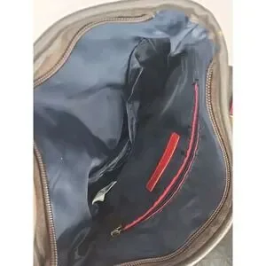 This Tommy Hilfiger crossbody bag is the perfect accessory for any occasion. This bag is pre-owned and in great condition. There are no holes, stains, or defects that I can see. With a square shape and tan color, it features a zipper closure and brown crossbody strap. This bag measures 9 inches by 9 inches by 3.