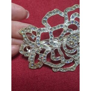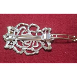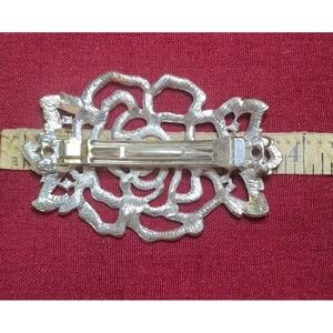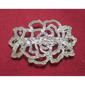 Vntg Style Large Rhinestone Rose Flower Hair Barrette Clip Wedding Formal Prom