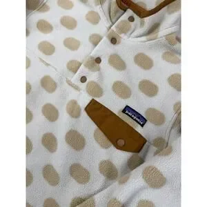 Patagonia Synchilla Fleece Pullover Womens Medium Polka Dot Snap-T Cream Tan