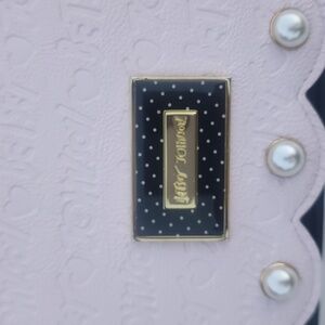 ๐ Beautiful Blush Pink n Black Betsey Johnson Crossbody/ Wallet Bag ๐ Pearl Accent ๐ Large Exterior Zipper ๐ 3 Interior Pockets ๐ 5 Interior Card Slots ๐ Interior Mirror ๐ 2 Button Snap Closure on Wallet Section ๐ Detachable Strap ๐