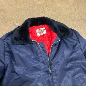 Vintage Dickies Jacket Mens Large Navy Blue Nylon Satin Sherpa Collar 80s 90s
