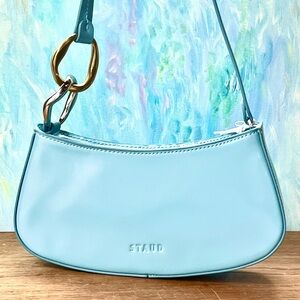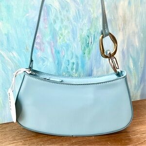 Mixed metal rings add a touch of unique elegance to the sleek & sculptural Staud Ollie Bag, especially captivating in the dreamy light blue Mist color. Strikingly beautiful with a curved silhouette & perfectly sized for day to night wear, so it can be paired with everything from casual to dress wear. Featuring gold & silver-tone rings at the handle, top zipper closure, patch & zipper interior pockets, suede lining & polished leather exterior. Approximate 9.75” long x 4.5” high x 2” deep, with an 8.75” handle drop. A new Staud dust bag is included with the purchase. This color is sold out & hard to find. NWT 🌷