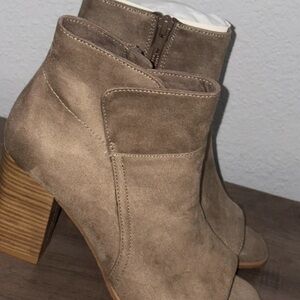 Melrose and Market Taupe Peep-Toe Block Heel Ankle Booties