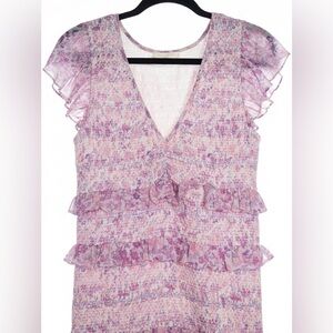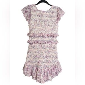 LoveShackFancy Sonora Ruffled Smocked Mini Dress Purple Floral Sz Small NWOT