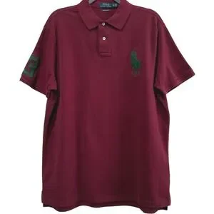 Polo Ralph Lauren Custom Slim Fit Polo Burgundy Green Big Pony Sleeve Patch M
