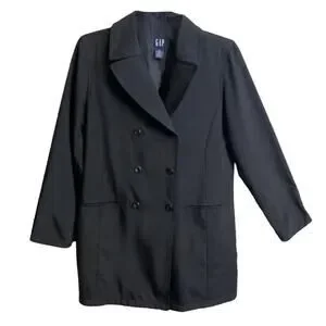 Gap Rain Coat SZ S Women's Black Lightweight Pockets Double Breasted